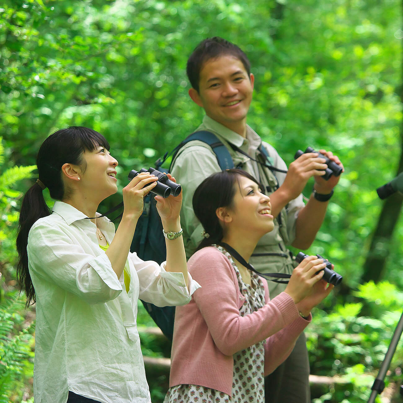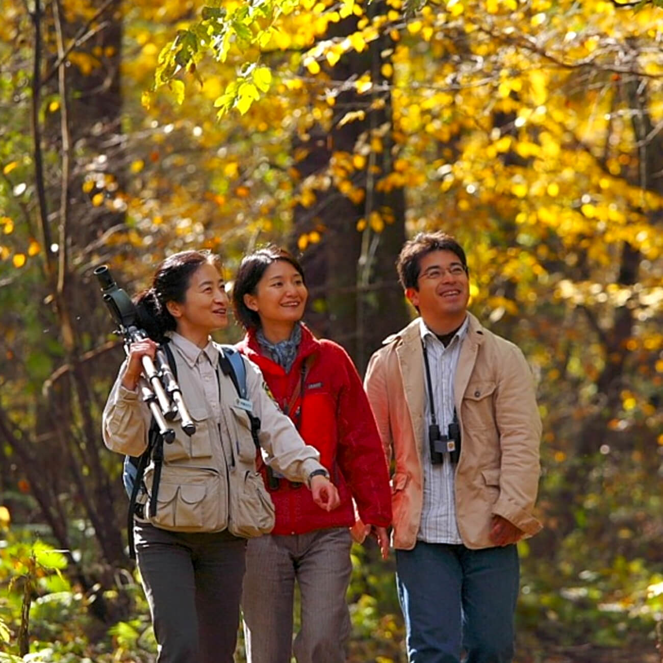 「野鳥の森ネイチャーウォッチング」は、ピッキオを代表するツアーです。「軽井沢野鳥の森」を歩きながら、四季折々の旬の生き物を観察します。歩行距離は2キロメートル弱。小さなお子様からご年配の方まで、どなたでも気軽にお楽しみいただけます。