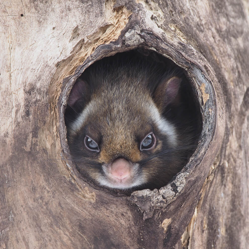 ムササビが、マントのような体を大きく広げ、夕暮れの森に飛んで行く姿を観察します。長年の調査により、生態や飛行ルートまで把握しているので、目撃率は95%以上(2023年:97.85%/2024年:94.96%)。ダイナミックな飛行シーンには、思わず歓声が上がります。