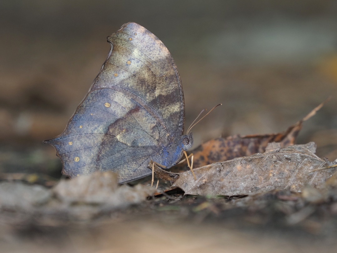 最後の写真は9月末に出会ったクロコノマチョウです。地面から枯葉が舞うようにチョウが飛び立ったので目で追うと、再び地面に静止しました。見た目も落葉にそっくりですね。成虫で越冬するチョウですが、暖かい地域に生息する種類なので、軽井沢では越冬できないかもしれません。