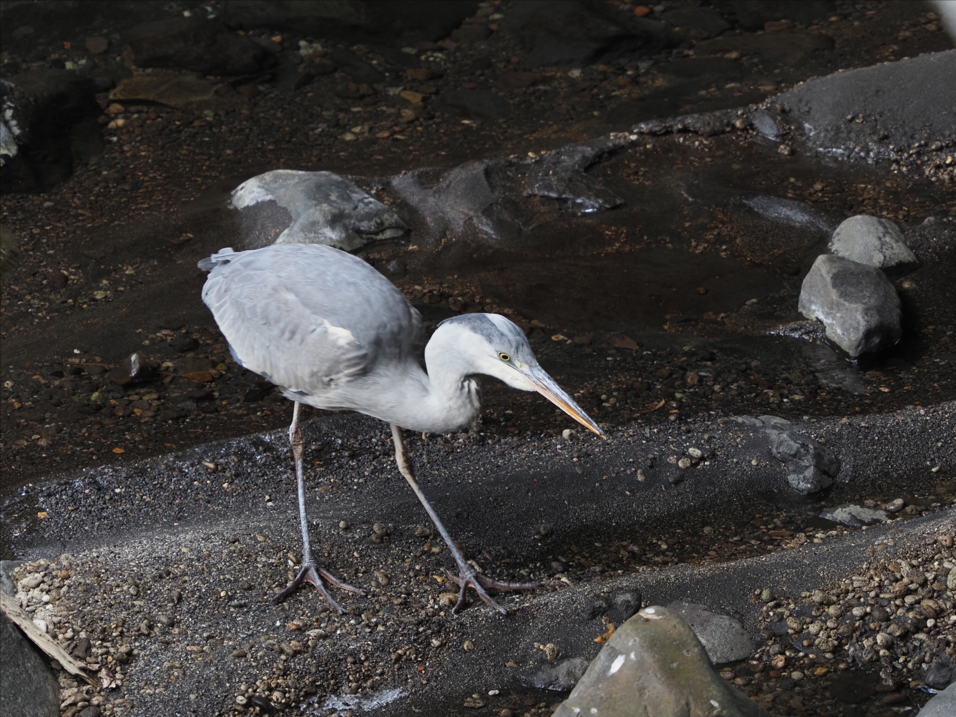 先日のことですが、「軽井沢野鳥の森」入口のすぐ脇、湯川にかかる「ふくろう橋」の下に、アオサギの姿を見つけました。