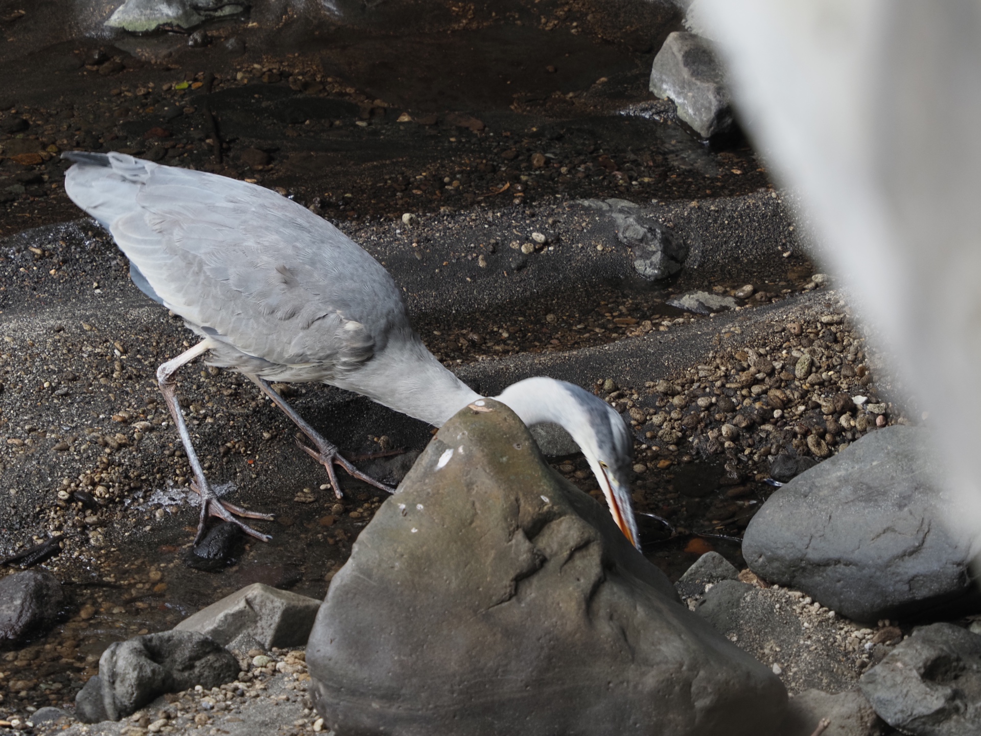 次の瞬間、大きな石の下あたりにくちばしを伸ばしました。