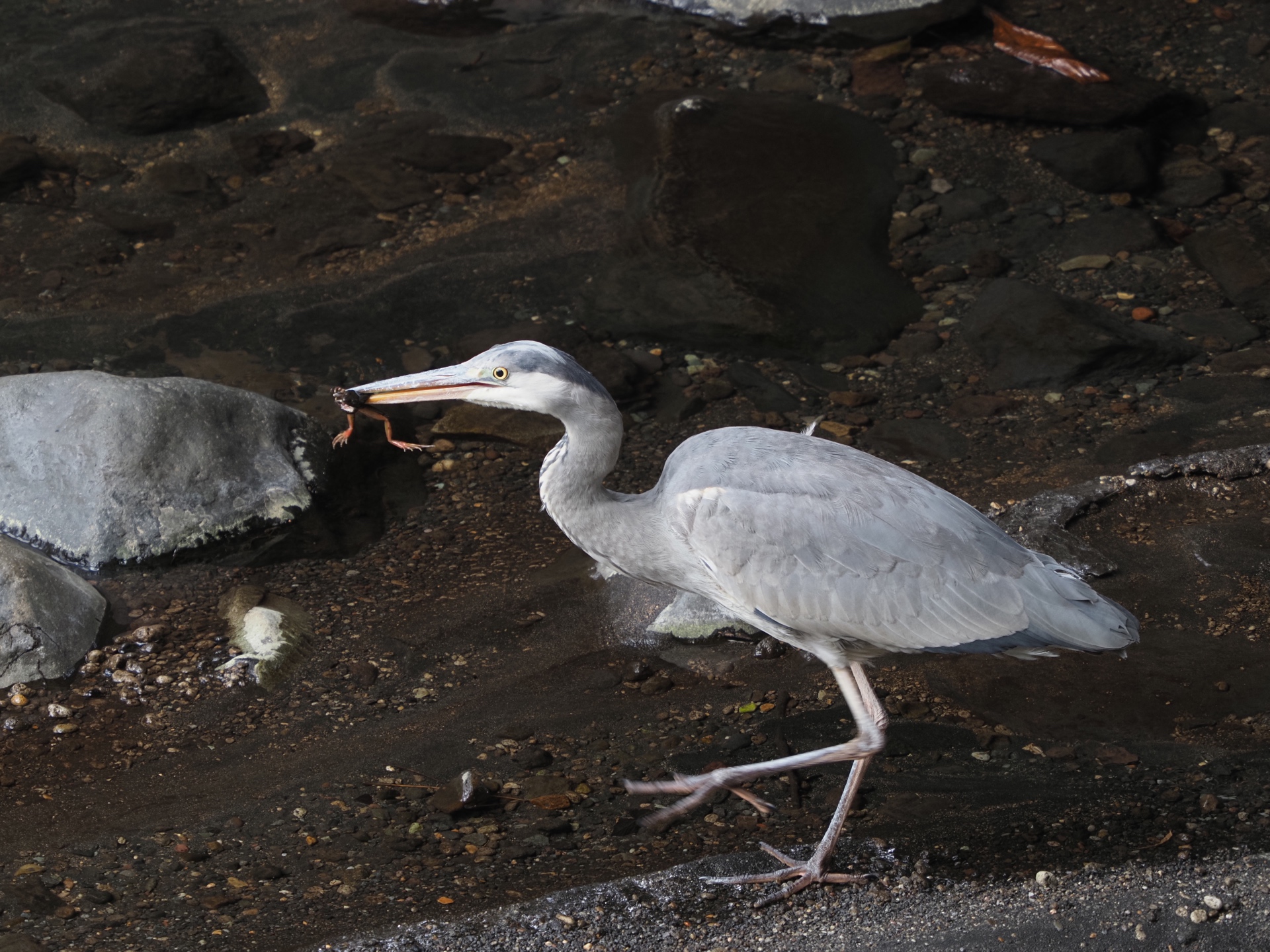 どうやら魚では無いようです。サギというと魚を捕まえるイメージが強いですが、アオサギは魚以外にも、カエルやヘビ、ネズミ、時には小鳥を襲うこともあります。