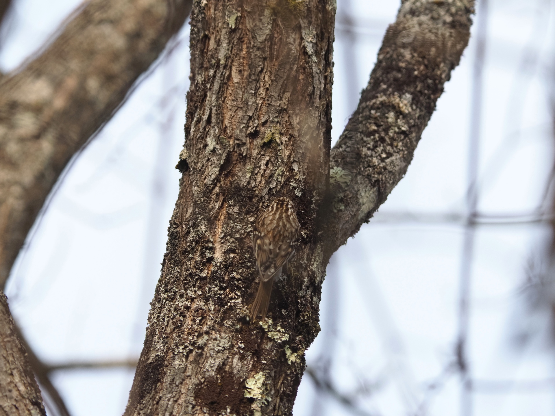 まだまだ朝は氷点下の気温ですが、それでもキジバトやアオゲラ、ヒガラ、イカルがさえずっていました。キバシリは樹皮の隙間に出入りしていましたよ。もう巣作りの場所を探しているのでしょうか?
