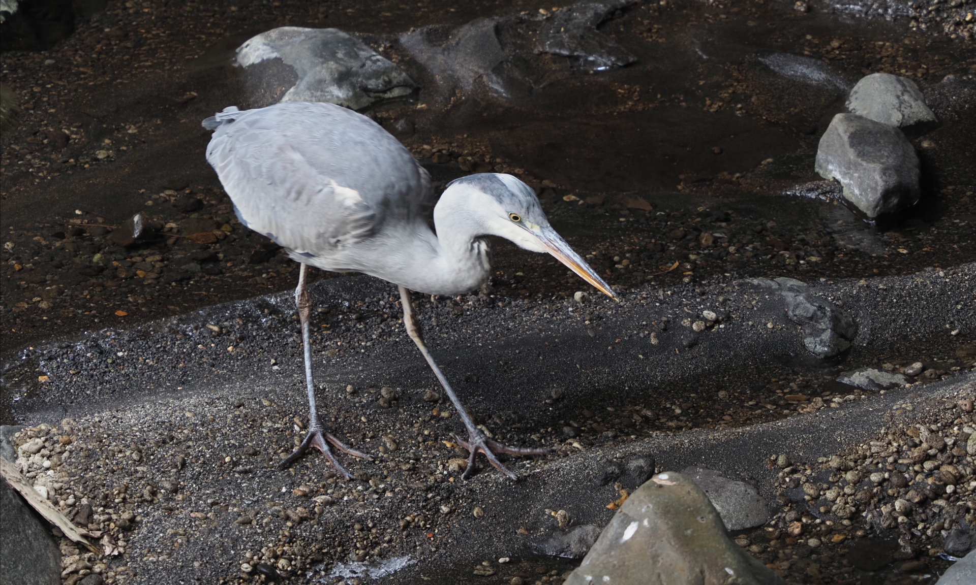 先日のことですが、「軽井沢野鳥の森」入口のすぐ脇、湯川にかかる「ふくろう橋」の下に、アオサギの姿を見つけました。