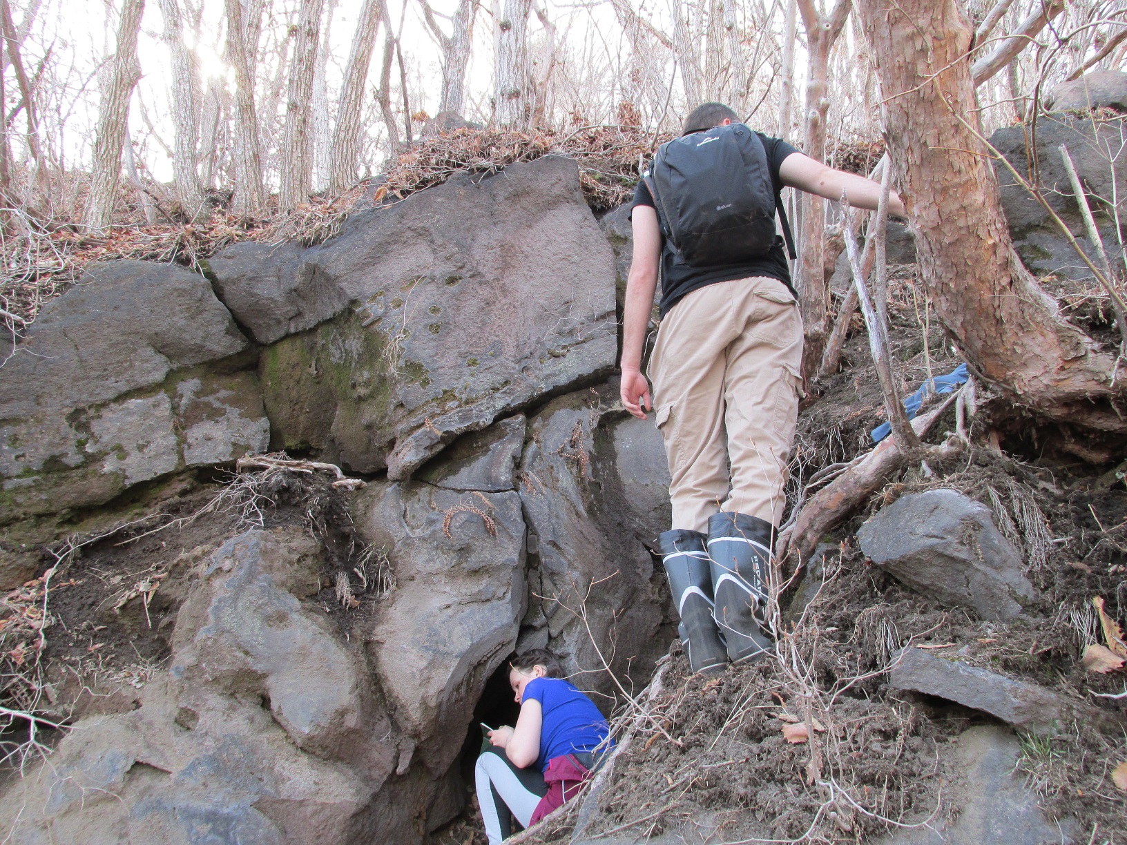 一方で、しばしば利用されるのが岩穴です。溶岩流が冷えて固まった岩場にはすき間ができており、クマにとって良い物件になっているのです。