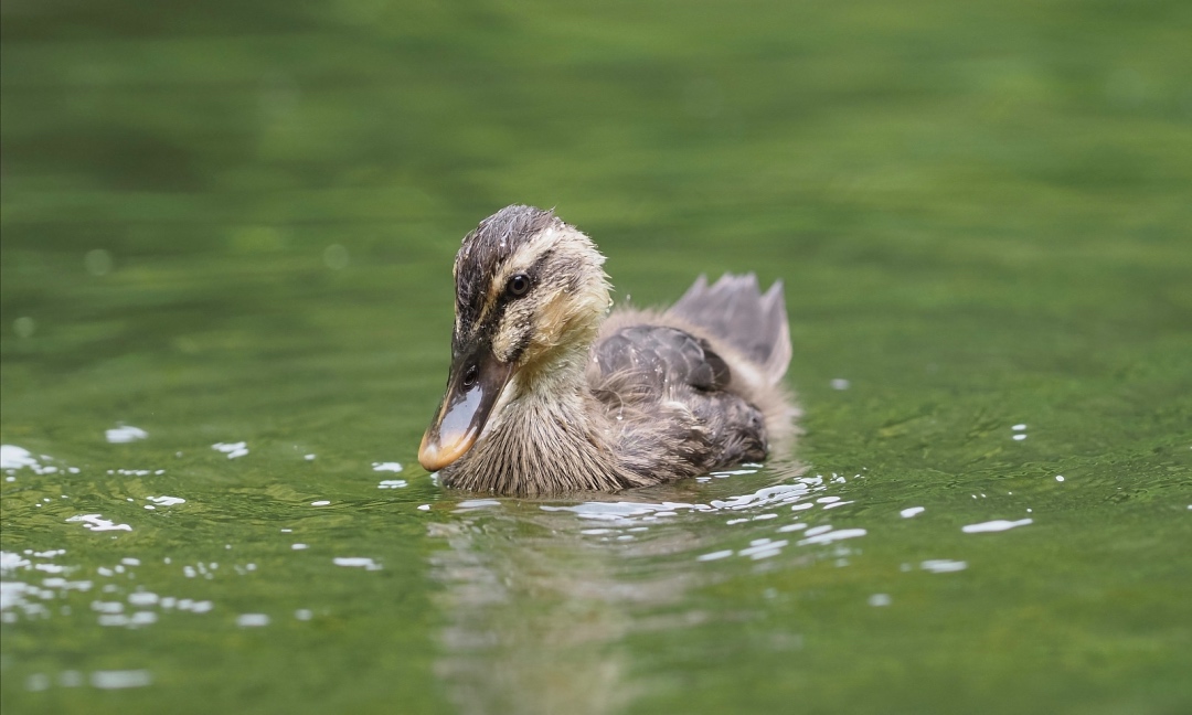 7月13日にケラ池の小島から姿を現したカルガモ兄弟。最初は9羽いたのですが、今は4羽にまで減ってしまいました。母親よりもまだまだ小さな体ですが、産毛の隙間から大人と同じ羽毛が見えるようになり、日に日に「可愛くなくなって」きましたネ・・・。