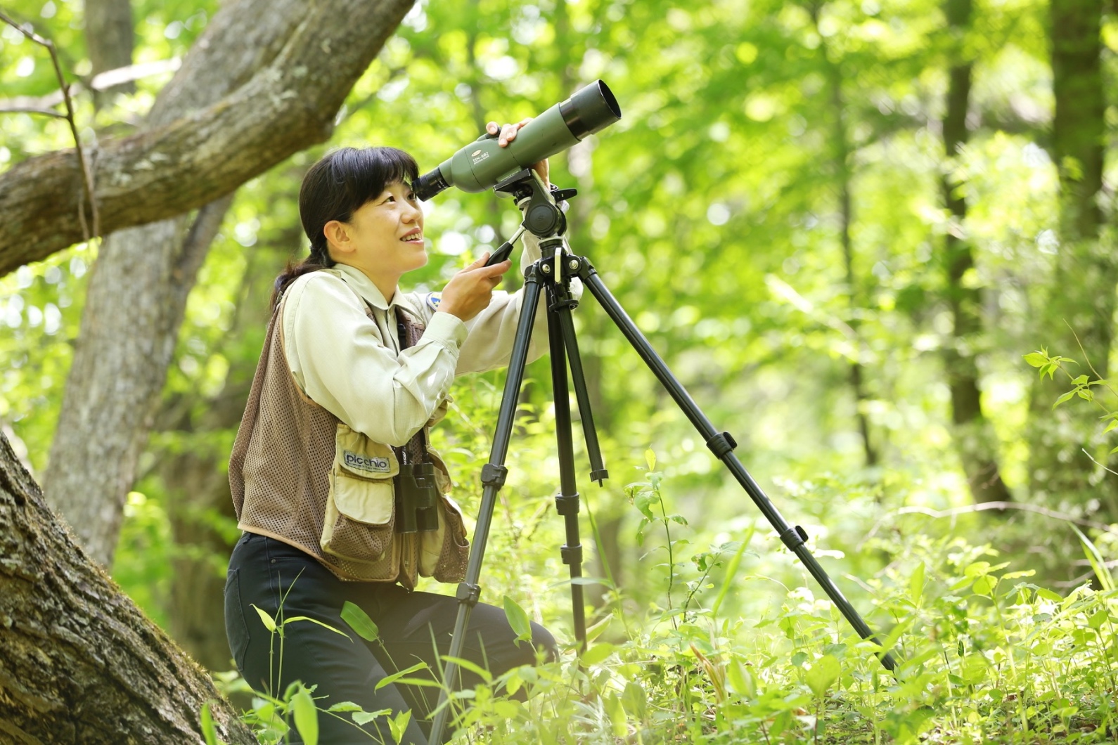 ピッキオスタッフ第1号。子どもの頃から野鳥を見続け、ピッキオの歴史と共に歩んで四半世紀超。春は野鳥の目覚めに合わせ、日の出とともに森に現れる。