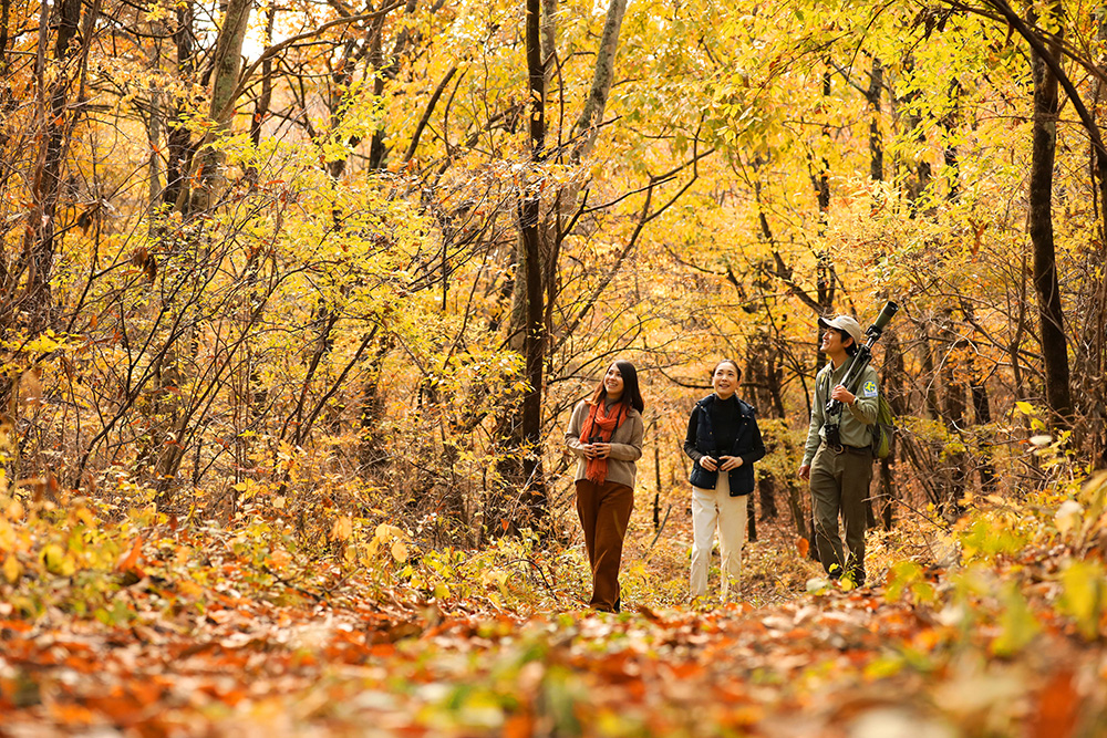 旅の最後は軽井沢の森を歩いてみましょう!ツアーの舞台は、軽井沢野鳥の森。でも、そこに暮らすのは野鳥ばかりではありません。森では、四季折々に花が咲き、虫が訪れ、野鳥がさえずり、リスやキツネが行き交います。その日その時ならではの「いちばんおもしろい生き物」をいろいろ観察できる、バラエティボックスのようなツアーです。