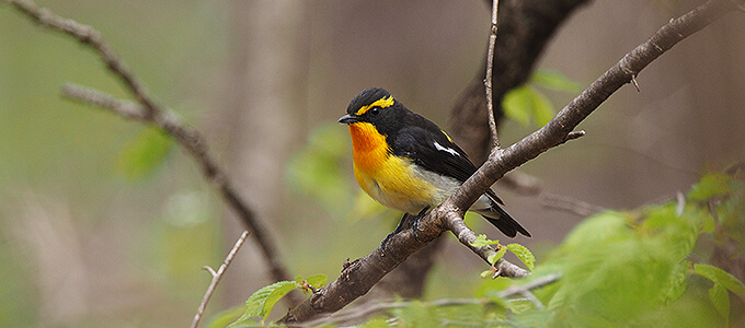 標高千メートルの軽井沢には、のんびりと春がやってきます。木々の芽吹きが始まるのは、ようやく4月下旬をすぎてから。葉が茂る前の森は見通しがよく、野鳥の姿をじっくり観察できます。