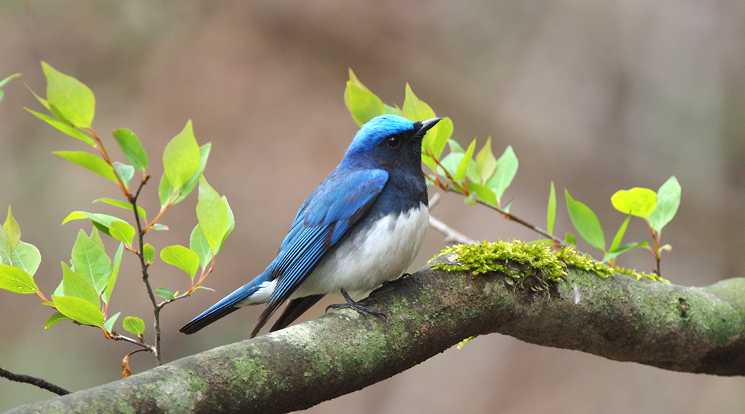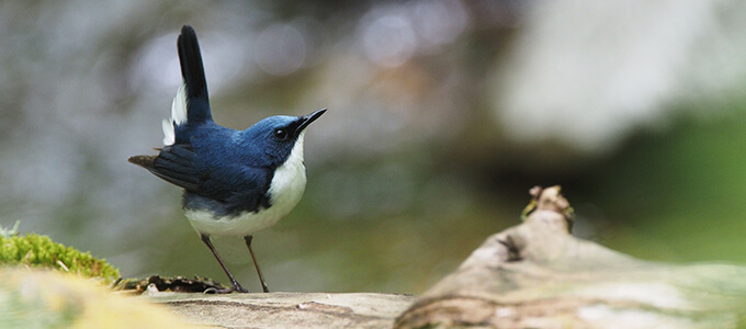 人気を二分するのは、青く輝くオオルリと、まばゆい黄色のキビタキです。いずれも4月下旬になると、東南アジアなどからやってくる渡り鳥です。渡り鳥以外の野鳥も含め、25種類前後の姿を見たり、声を聞いたりすることができます。