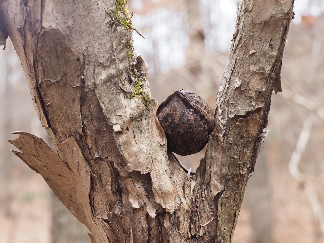 8月も下旬になると、野生のクルミ「オニグルミ」が実り始めます。栄養豊富なクルミの実は、ニホンリスの大好物。頭上から何かをかじる小さな音が聞こえてきたら、そっと顔をあげてみましょう。